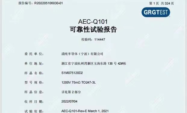 Good news! Pure semiconductor SiC MOSFET obtained AEC-Q101 automotive certification and passed HV-H3TRB rigorous reliability assessment